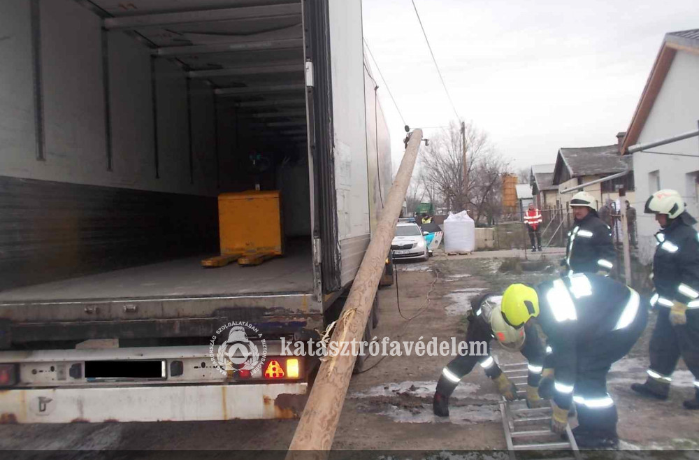Szerda délelőtt Püspökladányban, az Árpád utcában egy kamion ütött ki egy távközlési oszlopot, emiatt a város hivatásos tűzoltóit riasztották. Az oszlopot a kábelek és a kamion tartotta meg – számolt be a megyei katasztrófavédelem.
