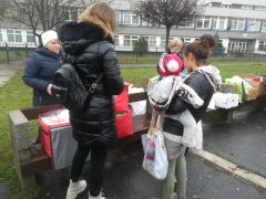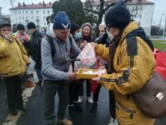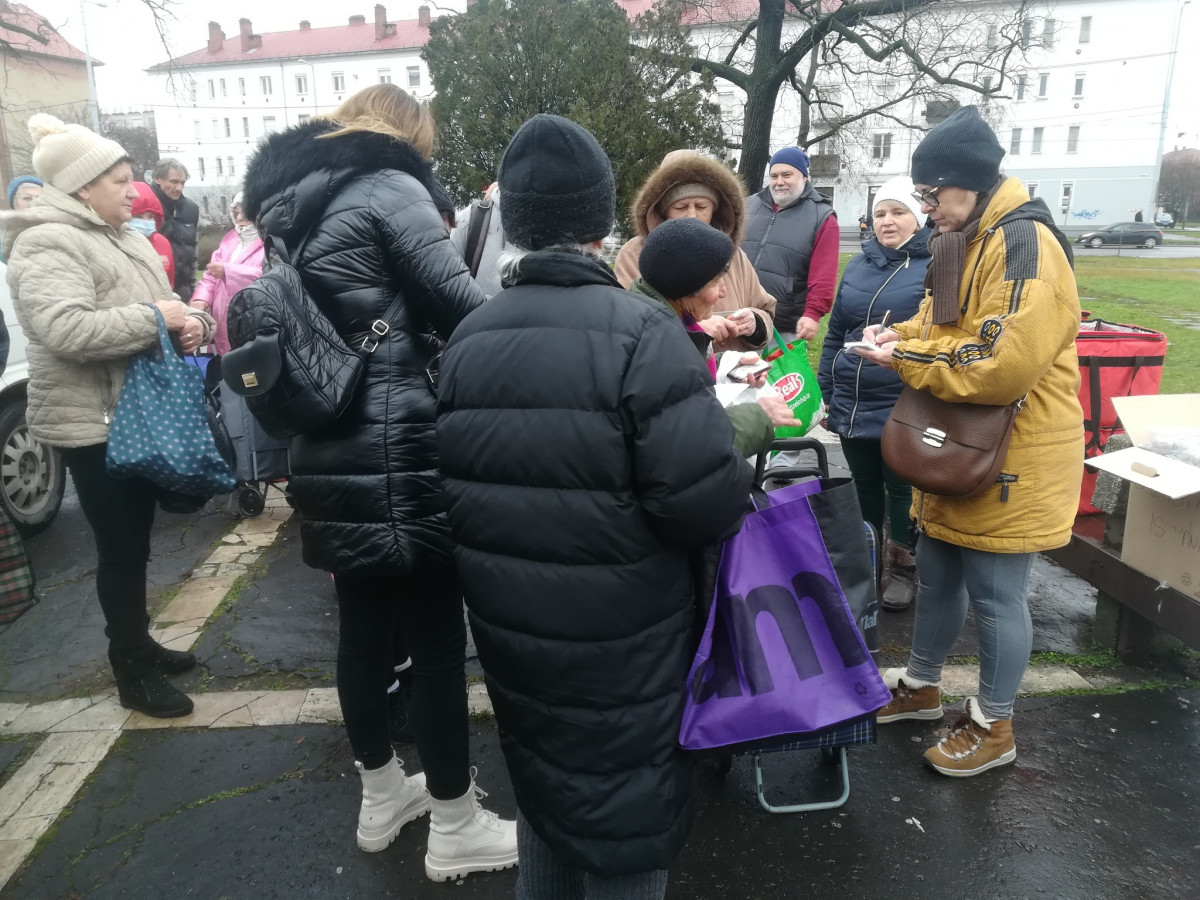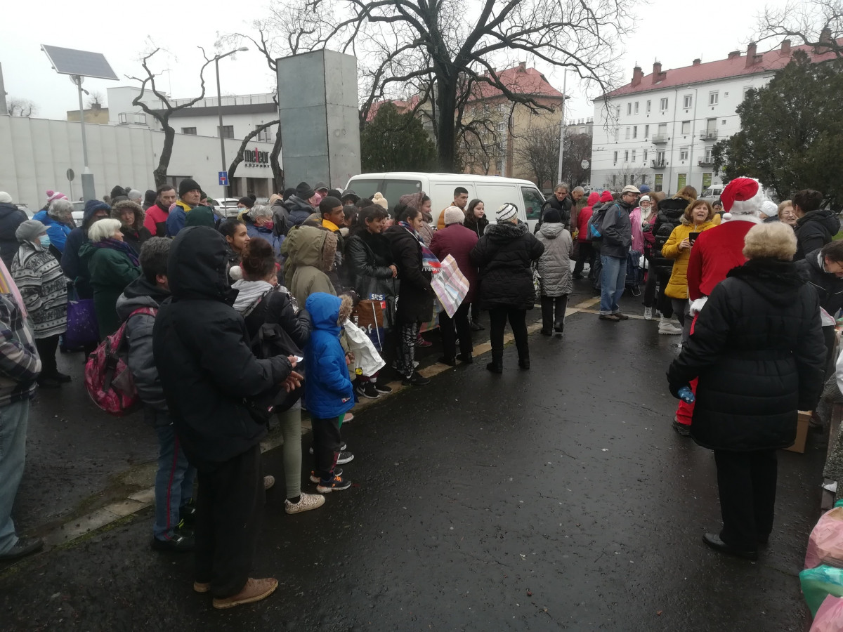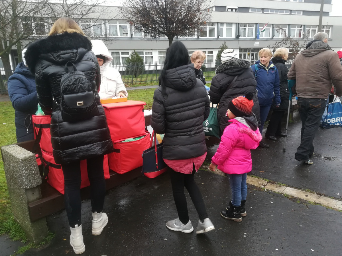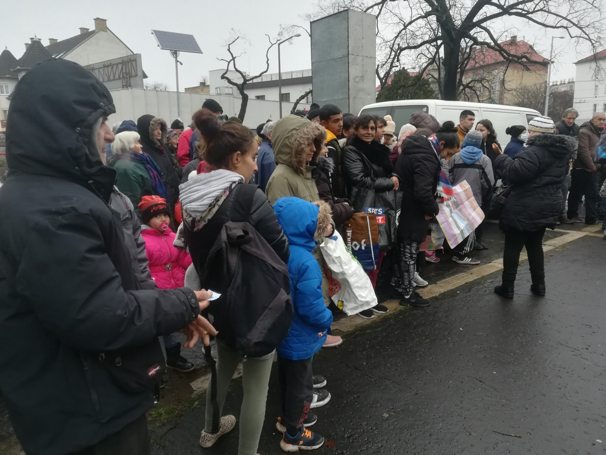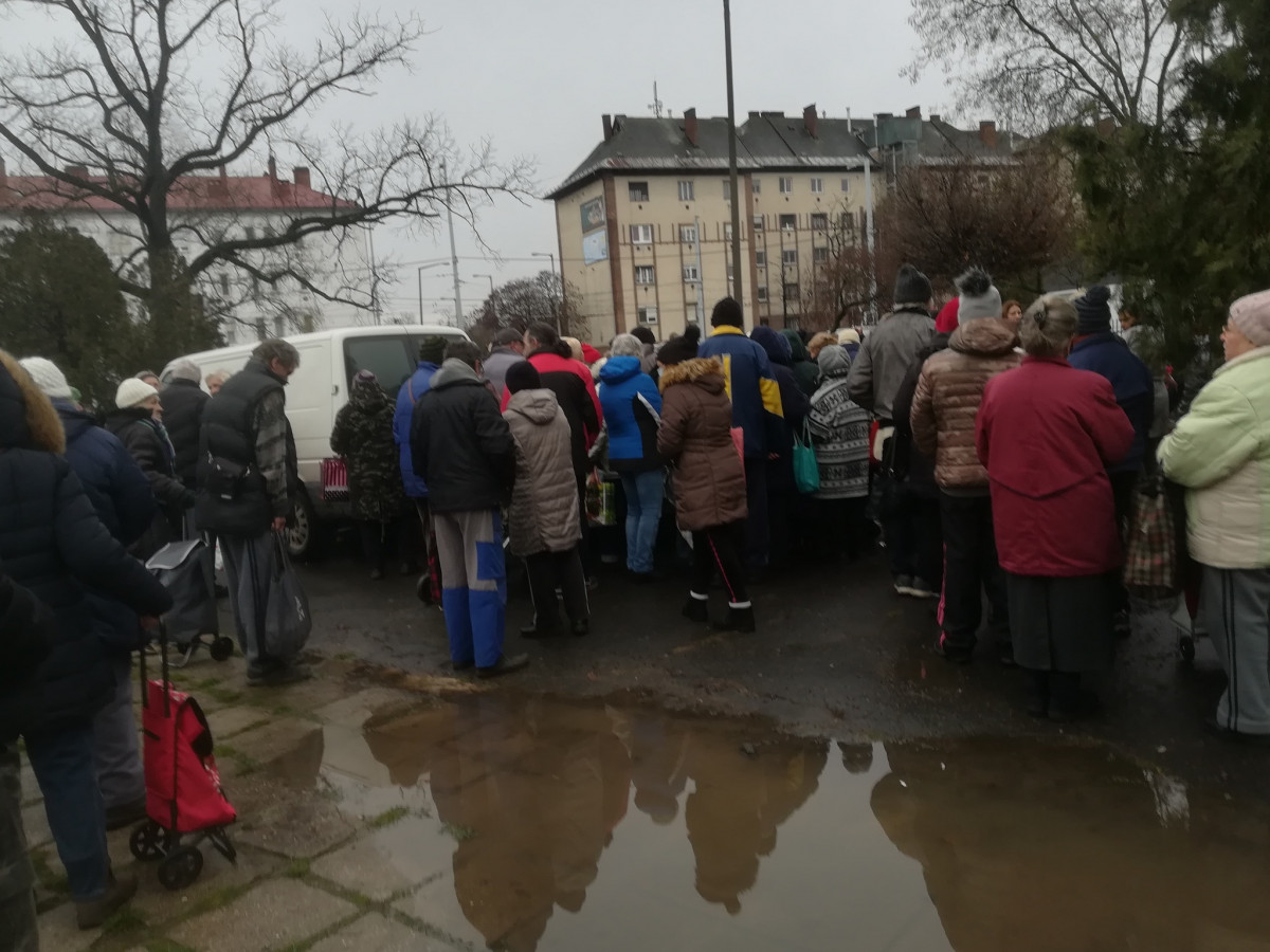 Az embertelen időjárás sem riasztotta el a társadalom peremén, a “láthatatlan” Magyarországon élőket attól, hogy sorban álljanak ételért. Folyamatosan jöttek a vendégeink, ennyien még sohasem voltak. Megtelt a tér nehéz sorsú emberekkel. Kisnyugdíjasok párjukkal vagy egyedül, és sokgyermekes családok várták, hogy tele “tarisznyával” tudjanak hazamenni. Megdöbbentő volt látni, hogy a sor egyre hosszabb lett, és csak érkeztek az emberek.