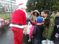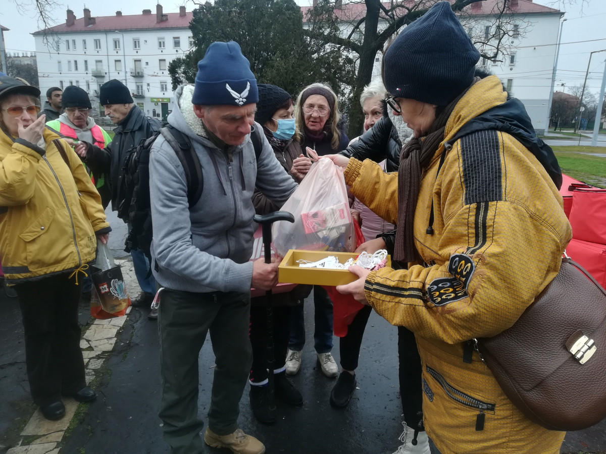 Az egyesület a maga szerény lehetőségei szerint igyekezett gondoskodni a vendégeiről. Még a Mikulás is megérkezett a térre, gyerekek, felnőttek örömére. A gyermekes családok könyveket, játékokat, édességet kaptak. A 100 ezer forint alatti nyugdíjból élő idősek között 10 tartósélelmiszer-csomagot sorsoltunk ki. Gazdára talált két fenyőfa is, ünnepi díszekkel. A “nyertesekkel” madarat lehetett volna fogatni, annyira örültek. Volt olyan nyertes, aki meg is könnyezte az ajándékot.