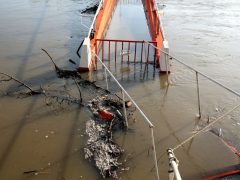 Az áradó víz rengeteg hordalékfát hoz magával, és sajnos az ilyenkor szokásos szemét is megjelent az árhullámmal. Így van ez Szegednél is, ahol gyorsan emelkedik a folyó szintje és nem minden úszómű tulajdonosa, üzemeltetője tudott időben lépni, a le/feljárókat a az emelkedő vízhez igazítani.
