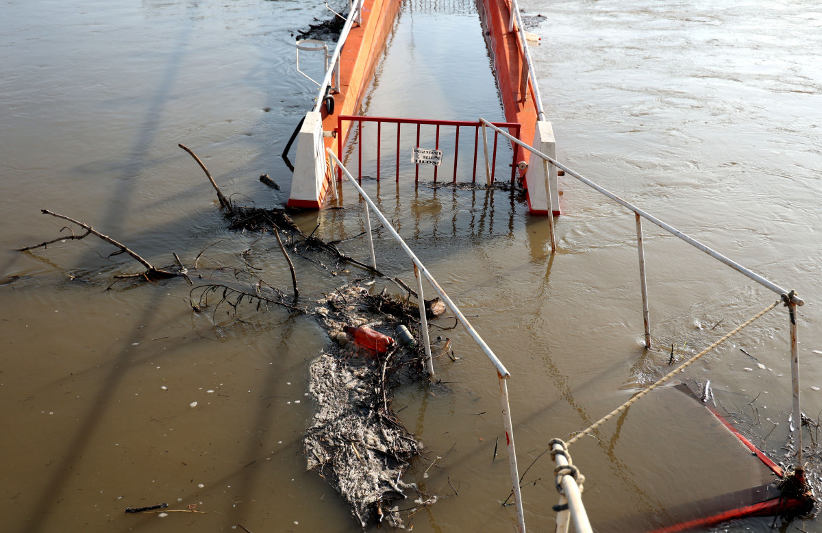 Az áradó víz rengeteg hordalékfát hoz magával, és sajnos az ilyenkor szokásos szemét is megjelent az árhullámmal. Így van ez Szegednél is, ahol gyorsan emelkedik a folyó szintje és nem minden úszómű tulajdonosa, üzemeltetője tudott időben lépni, a le/feljárókat a az emelkedő vízhez igazítani.
