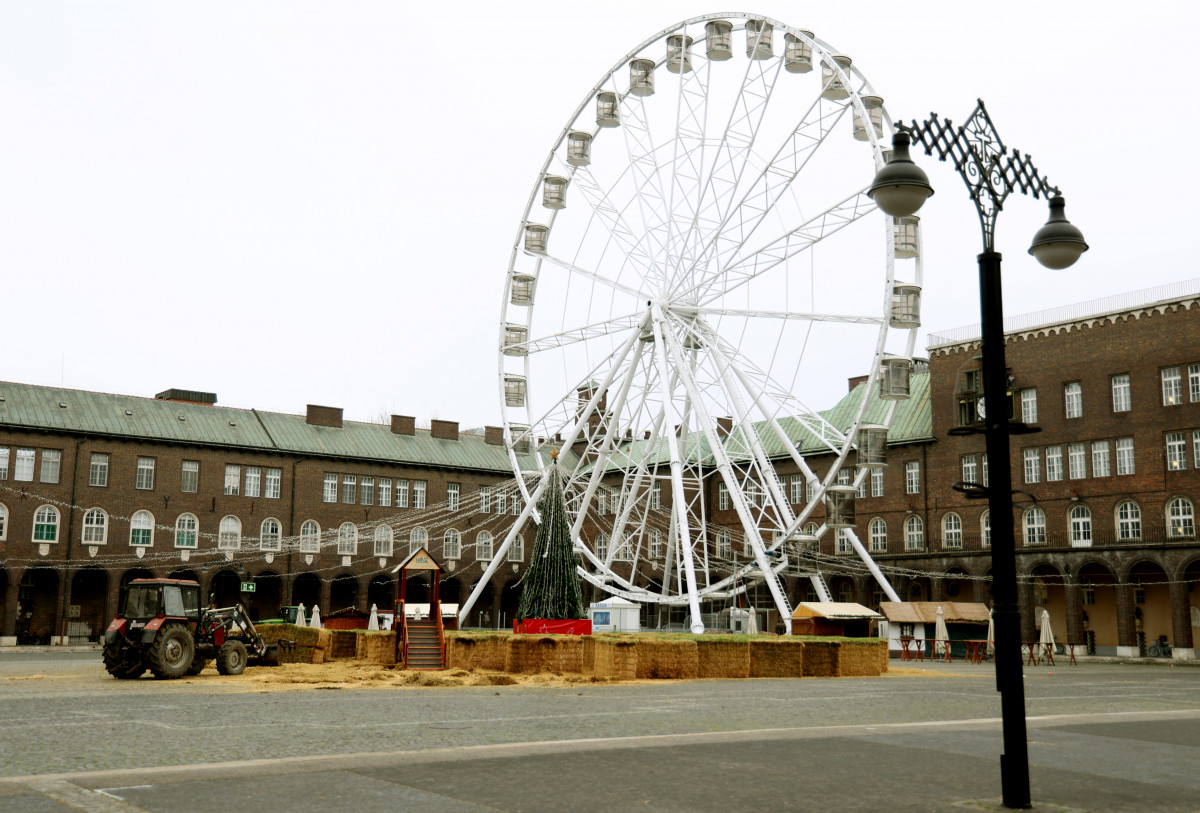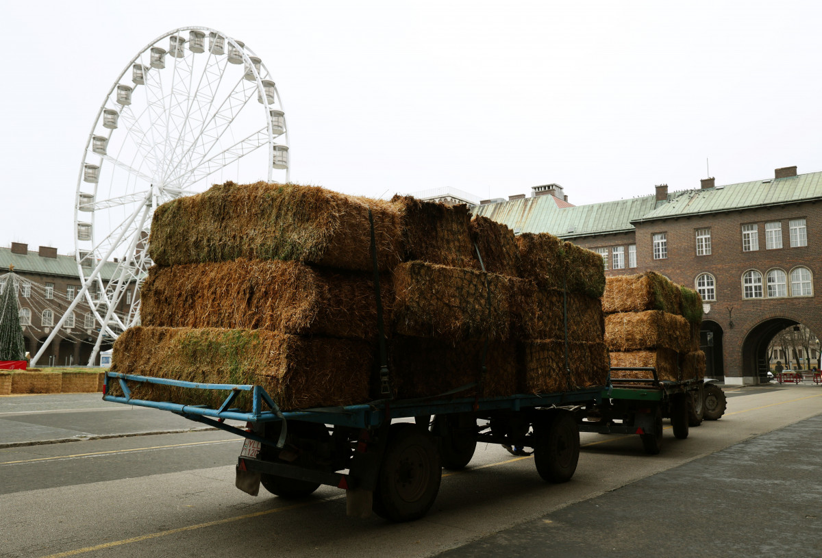 Hétfőn elbontották a szalmalabirintust, pótkocsikra pakolták a még mindig meglepően jó állapotban lévő bálákat, így azután érdekes agrárlogisztikai fotókat lehetett készíteni a Dóm téren. És ha már nem forog tovább, szétszedik majd az óriáskereket is…