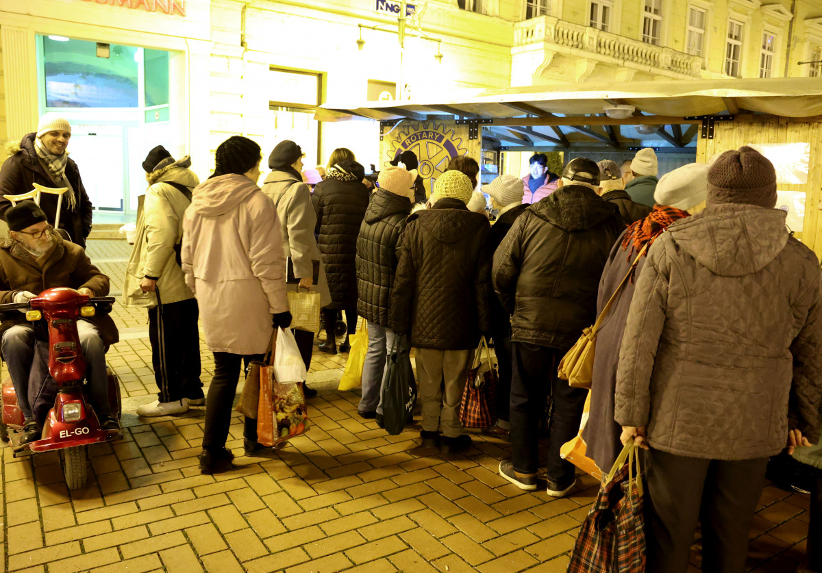 – Az önkormányzat előzetesen adott ki ételjegyeket nagycsaládosoknak és a Családok Átmeneti Otthona lakóinak, illetve a hajléktalanszállónak is jutott belőle. Ha mindenki megkapta az ételt, aki jeggyel rendelkezik, akkor kerülnek sorra azok, akik csak úgy eljönnek az ételosztás hírére – mondta portálunknak Kóti Zoltán, a klub soros elnöke.