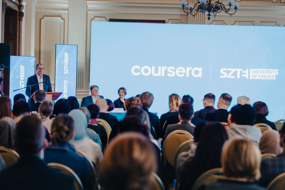 A professzor emlékeztetett: az egyetem és a Coursera együttműködése 2020 tavaszán kezdődött, amikor az oktatási portál ingyenes licencekkel támogatta az SZTE átállását a pandémia miatti online oktatásra. Az elmúlt három évben 2500 licenc segítségével fértek hozzá az egyetem hallgatói, oktatói és munkatársai a felülethez.