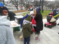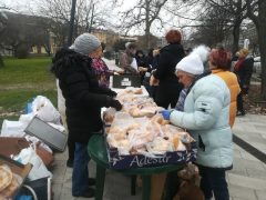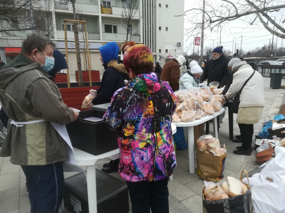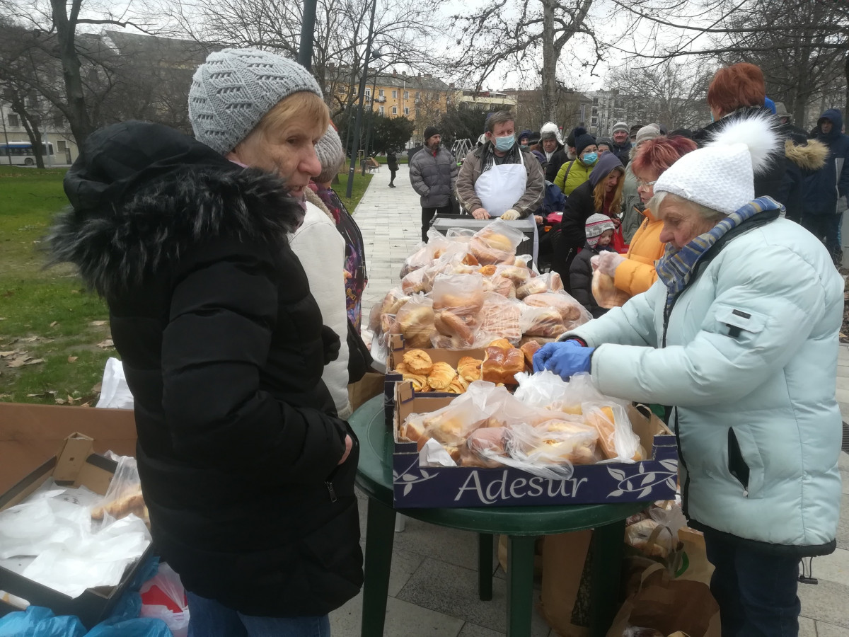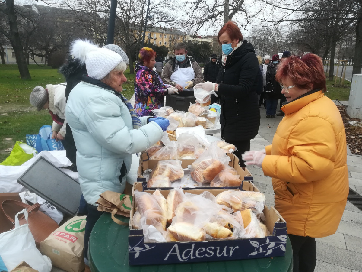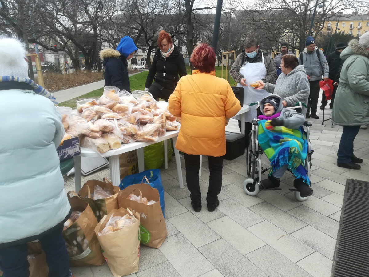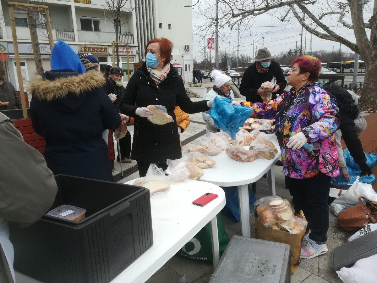 Több mint 150 adag töltött káposztát osztottunk ki, friss kenyérrel, péksüteménnyel Repetát már nem tudtunk adni, az utolsó morzsáig mindent kiosztottunk. A teljesítőképességünk határán vagyunk, sajnos igen korlátozottak a lehetőségeink. Támogatóink száma megcsappant, hisz’ a válság az ő életüket is megnehezíti.