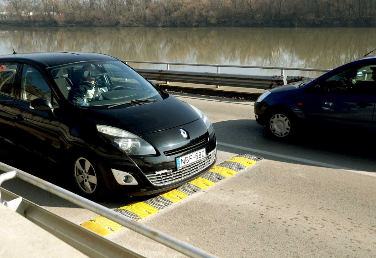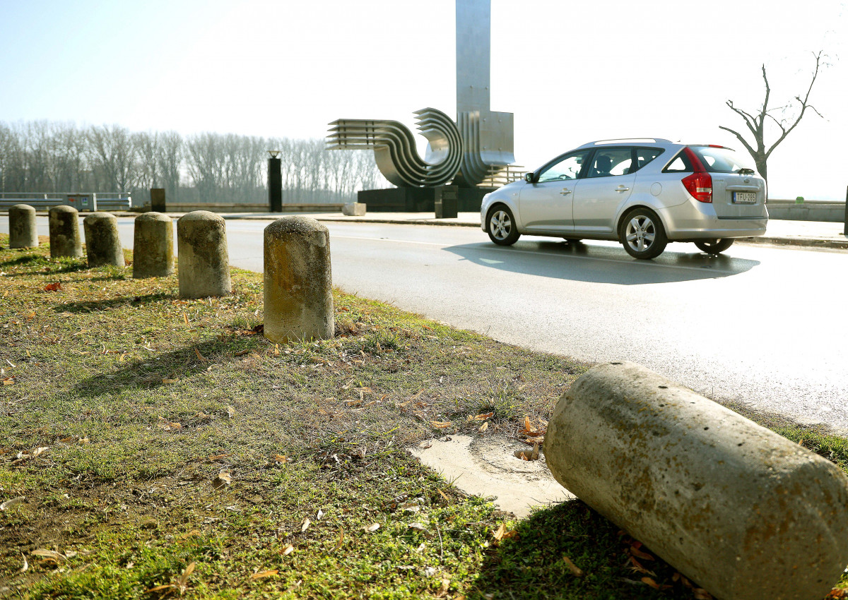 A közelmúltban többször ment neki autó a szegedi árvízi emlékműnek, gyakran rommá törve a tömzsi oszlopok gránitburkolatát. Ez is szerepet játszhatott abban, hogy nem is olyan régen visszahelyezték a fekvőrendőrt az emlékműnél lévő felhajtónál. A 30-as tábla nem volt elég meggyőző, a felütő futómű talán lassítja majd a száguldozókat és nem veszik olyan sodrósra a “kanyart”.