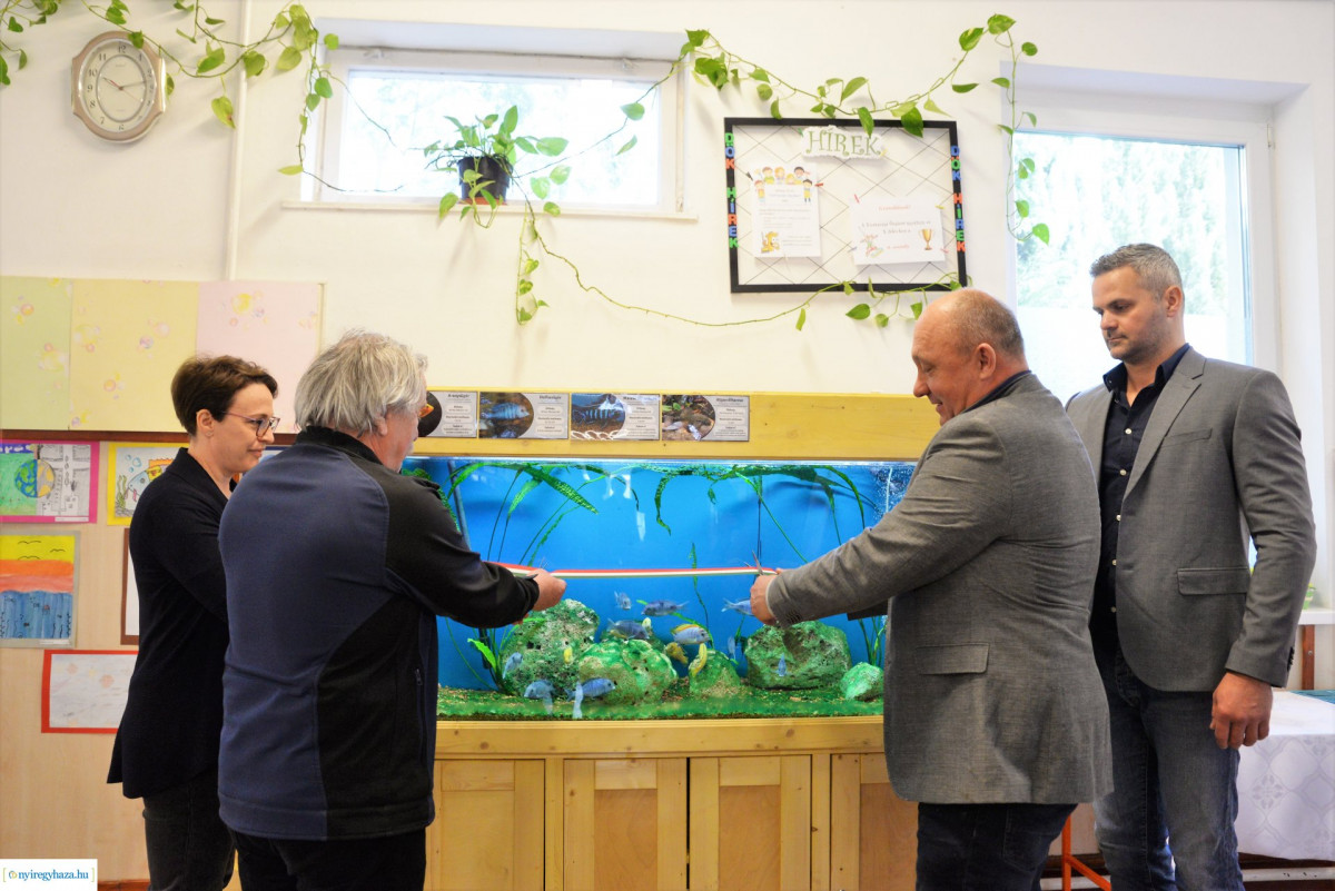 „Az akváriumátadáshoz a szakmai felügyeletet, az állatokat, a dekorációt és az egész működtetést a Nyíregyházi Állatpark vállalta. Az akváriumkomplexum megépítése, a talapzat az Igrice Egyesület felajánlása. Magát az üres üveg akváriumot szülői felajánlás által kaptuk. Ez egy igazi összefogás eredménye.” – mondta Rusznyák László, a tagintézmény vezetője.