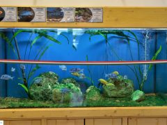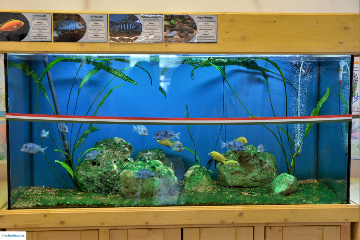 Alapvetően elsődleges szempont volt, hogy könnyen karbantartható legyen, és komoly sikereket érjenek el a gyerkőcök is az állatok etetésében, vagy akár egy utódnevelést is meg tudjanak tekinteni. Éppen ezért választottunk afrikai bölcsőszájú sügéreket. Erre a halcsoportra jellemző, hogy szájban hordozzák az ivadékaikat, ott növekednek az apróságok, remélhetőleg hamarosan ennek is szemtanúi lehetnek az itt tanuló gyermekek.
