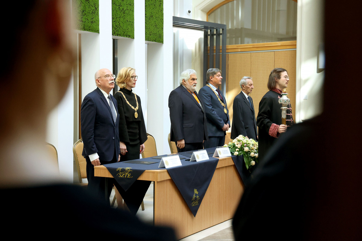 – Emlékezni és ünnepelni érkeztünk ma karunk főépületébe, a LawFarába, hogy felidézzük a szegedi jogásztársadalom 150 közös esztendejének történetét. Köszönettel tartozunk elődeinknek, 150 év jogászainak, hogy felépítették alma materünket, és gondos munkával a hazai tudományos és szakmai élet egyik erkölcsi és tudományos világítótornyává tették. Az igazság demokratikus erejében hívő szakemberek nemzedékeit adtuk az igazságszolgáltatásnak és az államigazgatásnak. Elég csak arra gondolnunk, hogy az elmúlt évtizedekben nem állt fel olyan kormány, Alkotmánybíróság, amely nélkülözte volna a szegedi jogi kari alumnusokat, azok tudását, értékrendjét – osztotta meg gondolatait az SZTE ÁJTK dékánja, aki a 2022/23-as ünnepi tanév rendezvényein keresztül láthatóvá tette a kari közösségi lét fontosságát.