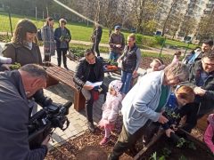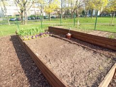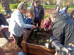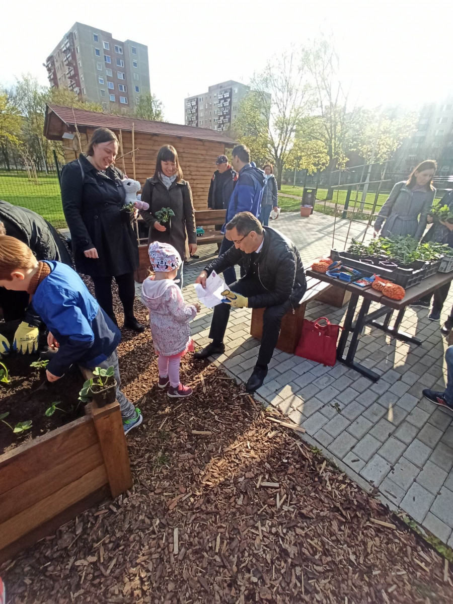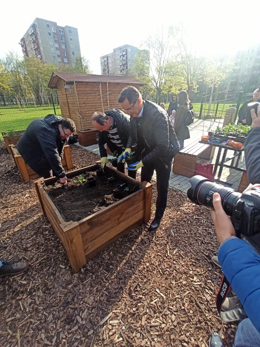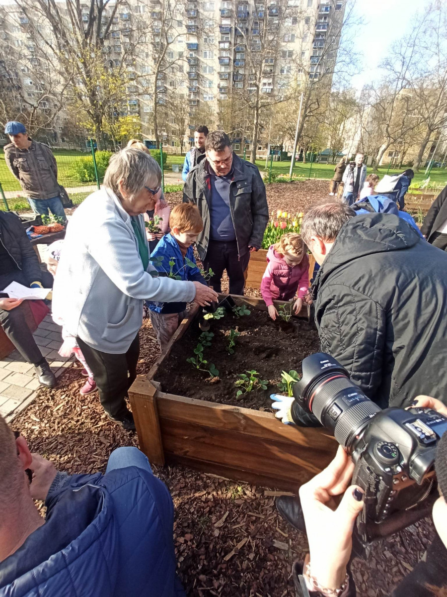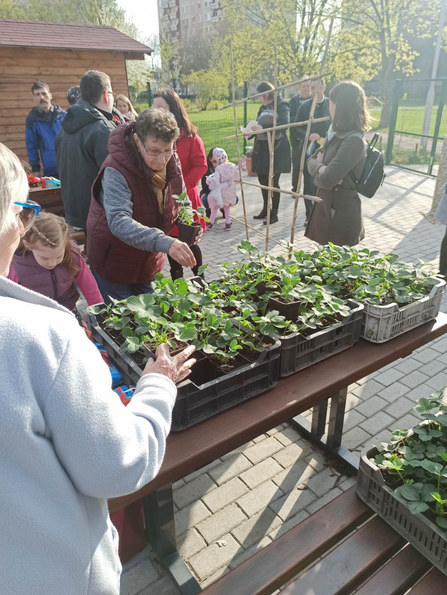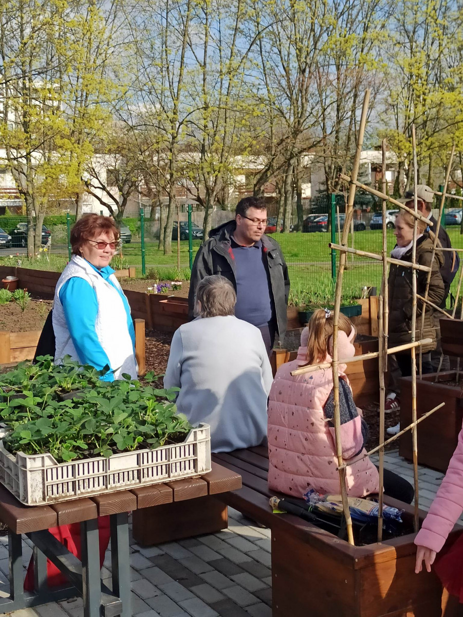Jó kezekbe kerültek a magaságyások a Tócóskerti Közösségi Kertben: a lakótelepen élők nagy gondossággal kezelik a tavaly átadott területet. A tavaszi ültetési időszak közeledtével földieper-palántákat és zöldségek vetőmagjait adtuk át a kertészeknek. Jó időt, finom termést kívánok!