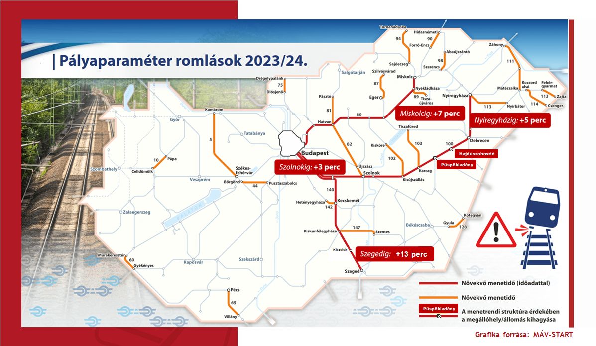 Igen, jól látják. Jövőre tizenhárom perces menetidő-növekedéssel lehet számolni Budapest és Szeged között, az intercityk hivatalosan is ennyivel lassabban érhetnek fel a decemberi menetrendváltáskor életbe lépő új vasúti menetrend szerint – a pálya állapota miatt.