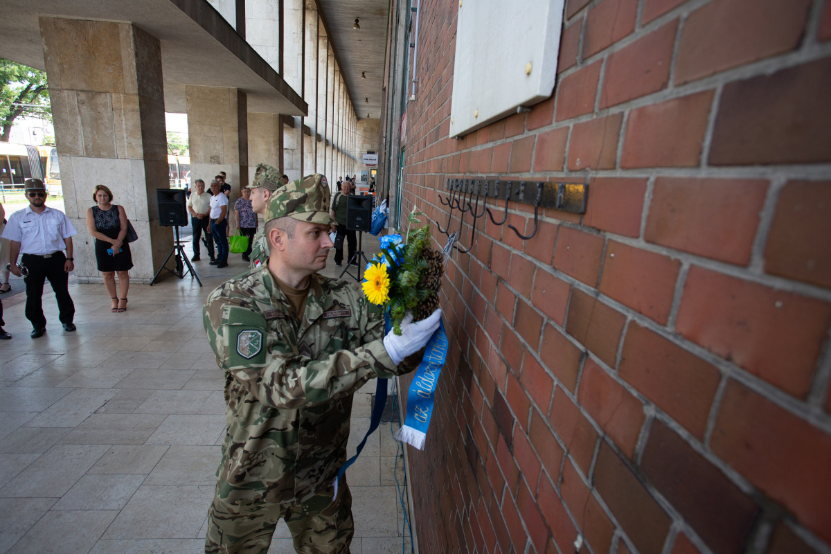A Nagyállomás épületének falán elhelyezett emléktáblánál Hadnagy Attila, a MÁV Zrt. Területi Igazgatóságának területi igazgatója mondott beszédet. Kiemelte, hogy 1944. június 2-án összehangolt légi támadás történt a magyar pályaudvarok ellen. Szolnok, Miskolc, Debrecen, Nagyvárad és Kolozsvár pályaudvarai is jelentős károkat szenvedtek el. Felidézte, hogy Debrecenben 9 óra 5 perckor kezdődött meg a bombázás első hulláma. A városra összesen 102 gép 250 tonna bombát vetett le, amelyek a pályaudvar melletti lakott területet is szétzúzták, a szétbombázott városok között pedig Debrecenben volt a legtöbb áldozat.