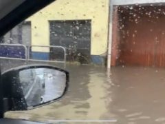 A nyíregyházi Fő úton egy családi ház pincéjébe nagy mennyiségű csapadékvíz folyt be. A helyi hivatásos tűzoltók szivattyúval távolították el az összegyűlt vizet.