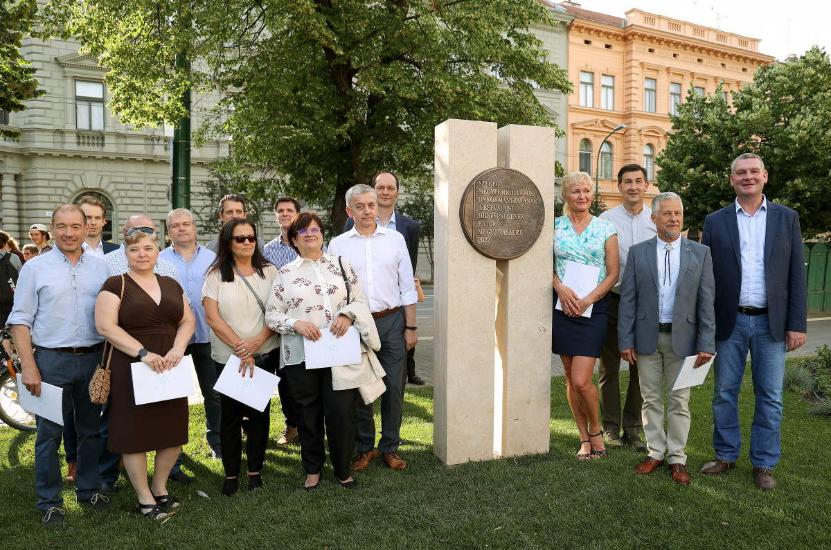 Az elismerést jelző – német jura mészkőből és bronzból készült – emlékművet, Bánvölgyi László szobrászművész alkotását, a Móra Ferenc Múzeum mellett állították fel.