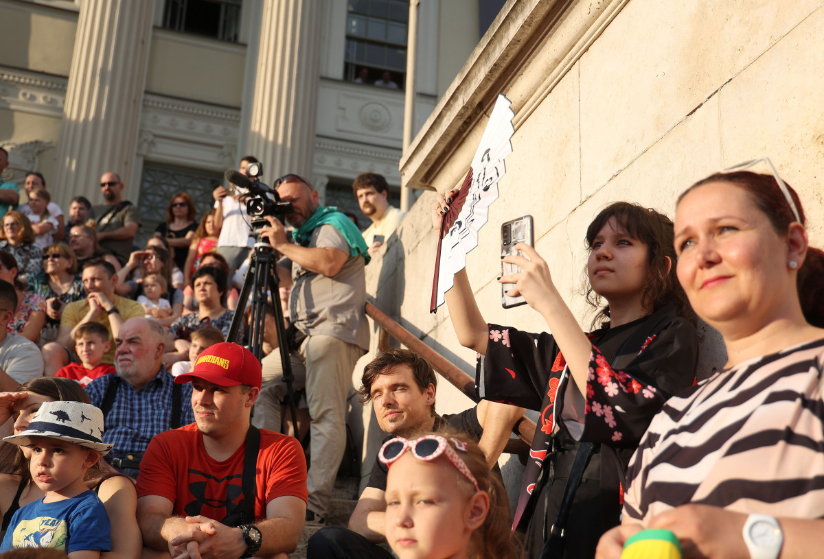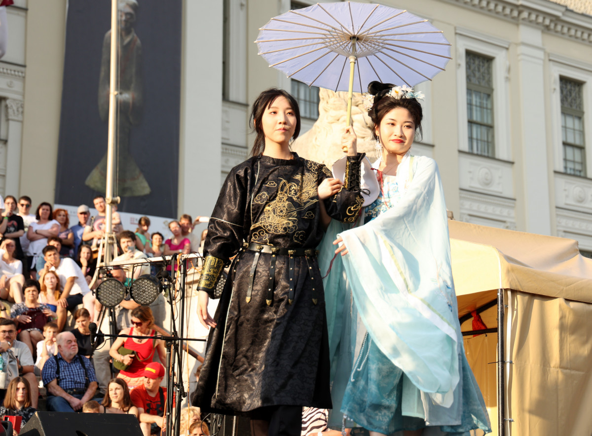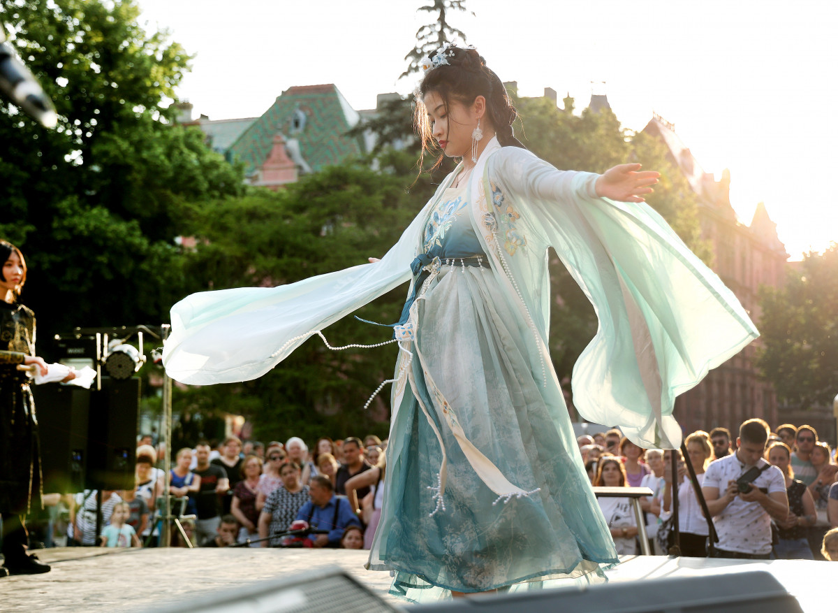 A kalligráfia bemutató után a program szerint a Konfuciusz Intézet tanárainak kínai viseletbemutatója következett, majd kínai táncosok léptek fel a múzeum előtt. Egyikük kisebb csoportja már ugrásra készen várta a színpadi megjelenést a múzeum tövében, ott ahol sokáig a sörkert működött. És persze látványos programpontnak ígérkezett a Szent Iván-éji tűztánc is.