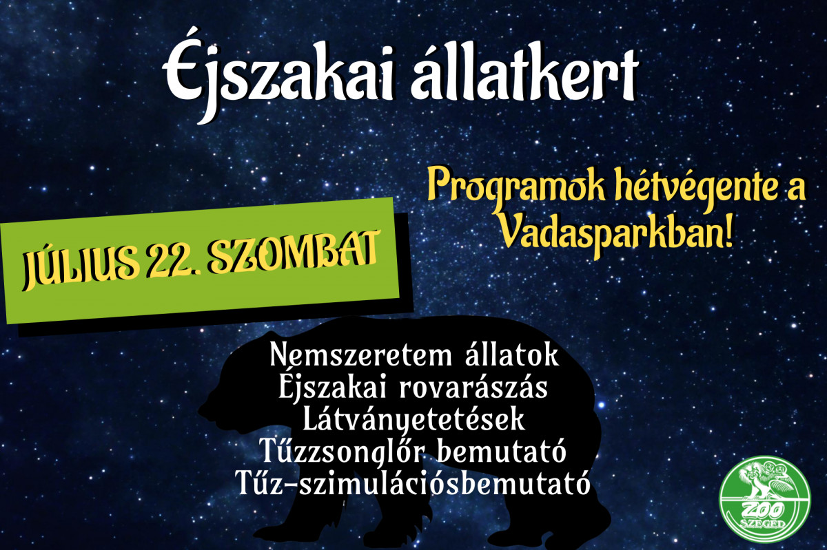 Különleges esti programokkal várják szombaton a Szegedi Vadasparkban a látogatókat – tájékoztatta Veprik Róbert igazgató az MTI-t.