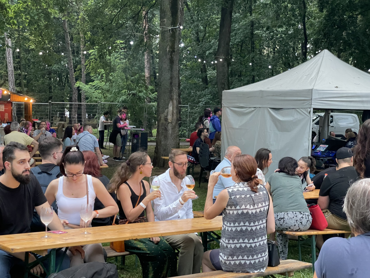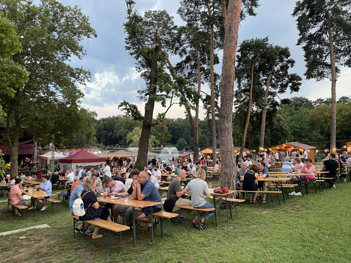A szokásosnál hűvösebb idő dacára rengetegen látogattak ki a nagyerdei programra, és a vizes padok sem gördítettek leküzdhetetlen akadályt a bulizók elé. Sőt a földön a lépcsőkön is ültek.