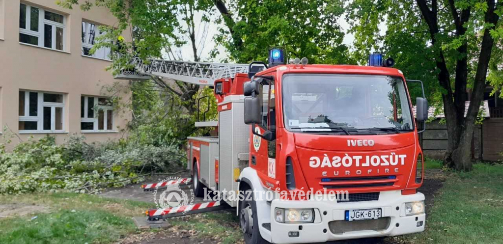 Csongrád-Csanád megyében utakra, épületekre dőlt fák miatt hívták a tűzoltókat. Hódmezővásárhelyen a Szent István téren iskola kerítésére dőlt egy fa.