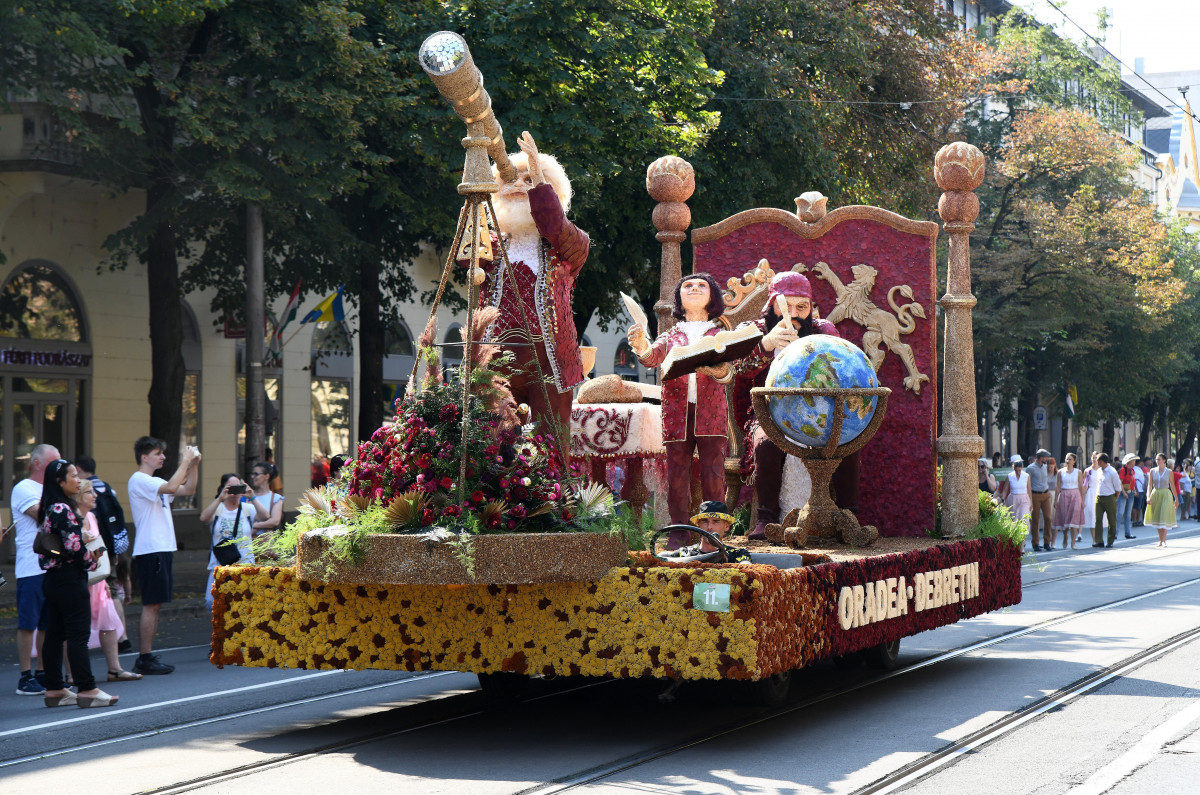 A partiumi Nagyvárad kompozíciója a debreceni virágkarneválon 2023. augusztus 20-án. MTI/Balázs Attila