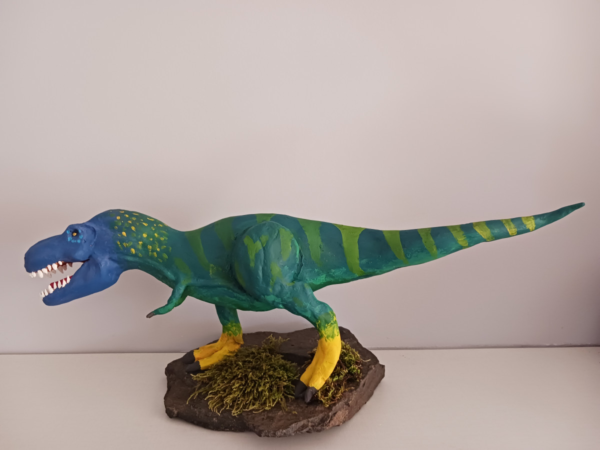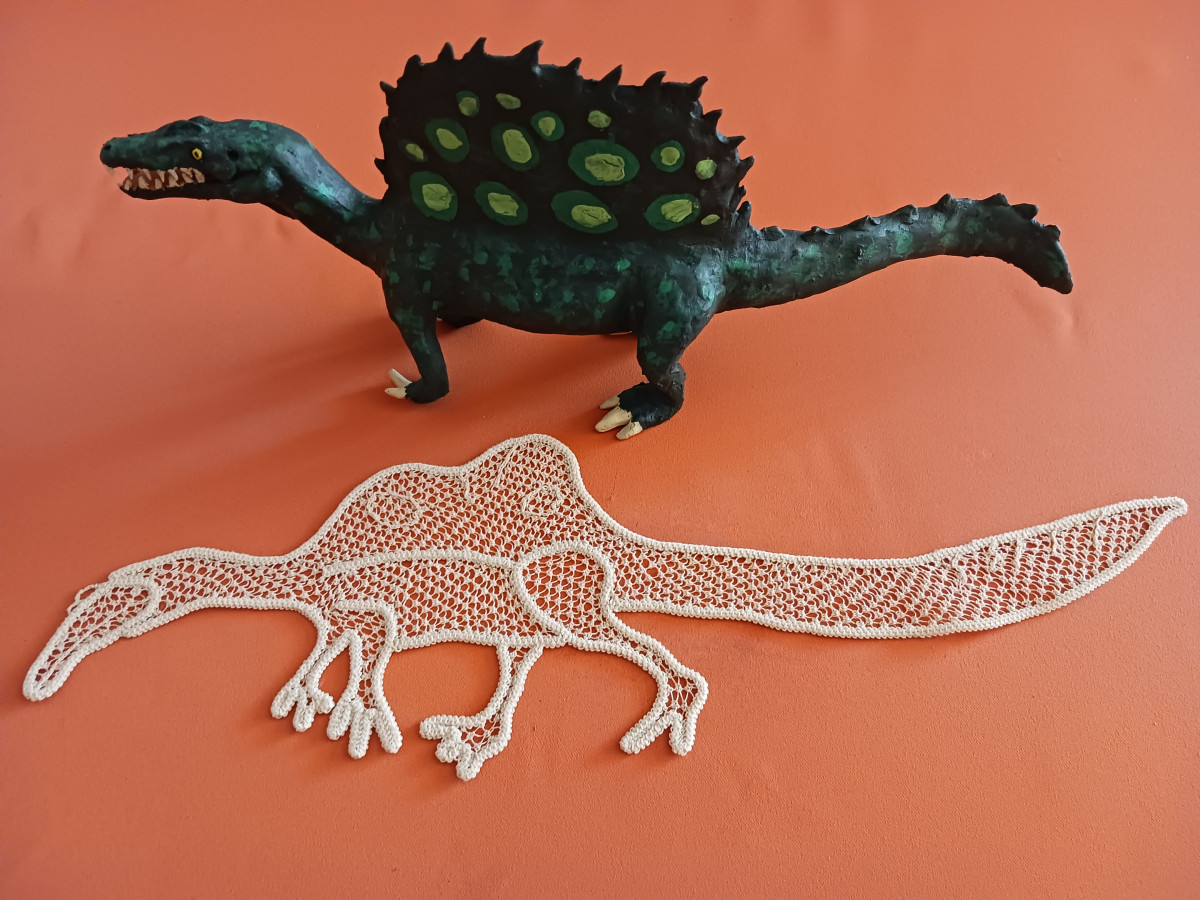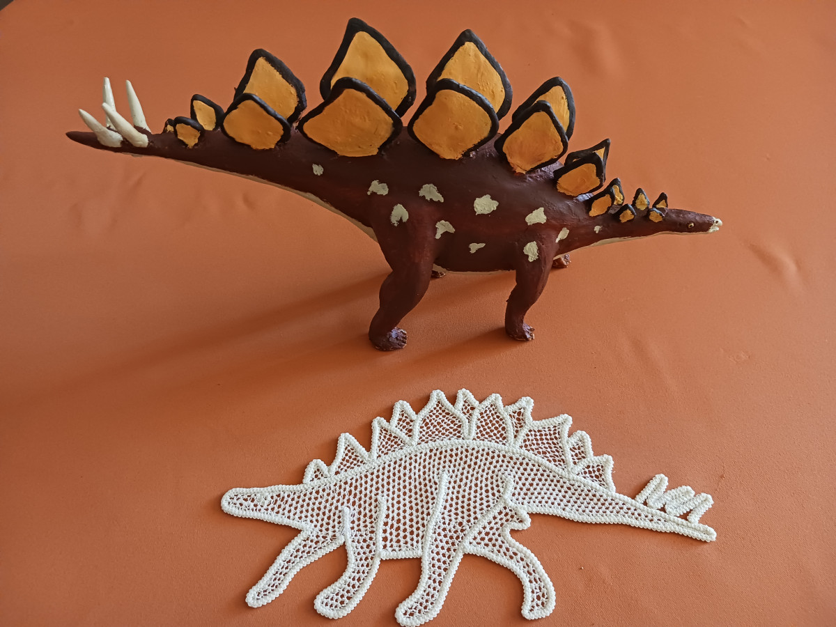 Egyrészt maga a figurák elkészültéig tartó folyamat is egy izgalmas utazás. Kezdve a tervezésen, formázáson, festésen át mindegyik munkafázis kikapcsolódás a számomra, ami felér egy-egy remek meditációval. Ilyenkor nem foglalkozom a világ dolgaival, csak az alkotásra koncentrálok. Másrészt belátható időn belül szeretnék egy kis ismeretterjesztő őslénytani kiállítást szervezni különféle kreatív, kézműves, dinoszauruszokhoz köthető alkotásokból. Gondolok itt többek között a 87 éves nagymamám, Sárközi Sándorné őslényeket ábrázoló csodálatos csipketerítőire is, amelyeknek valóban nagy a művészeti értéke és egyedisége. Ezekből a különleges terítőkből van még néhány a kívánságlistámon, melyek fantasztikusan mutatnának az adott állat figurája mellett. Nagy öröm számomra, hogy a horgolt „csipkeszauruszokkal” a nagymamám is hozzájárul a gyűjtemény anyagához, és gazdagítja a leendő kiállítás sokszínűségét, amivel majd az ismeretterjesztés és rácsodálkoztatás lesz a célom az őslények titokzatos világára.