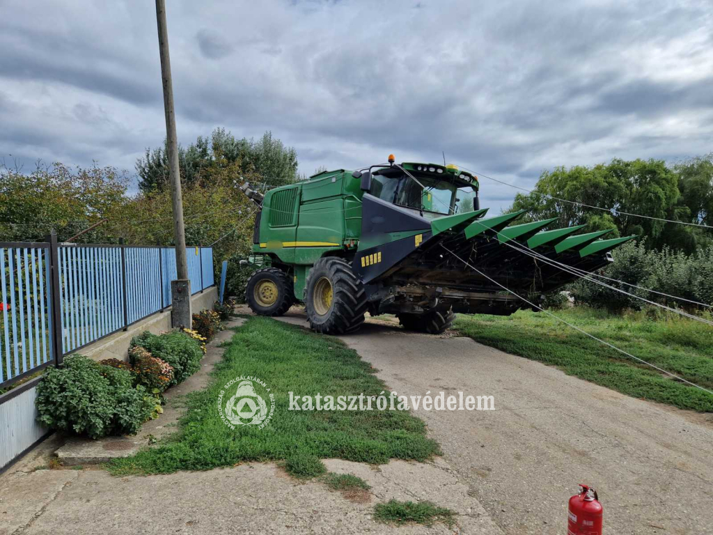 Elektromos légvezetékbe akadt egy kombájn, amely a vezetéket tartó betonoszlopnak ütközött Szamosszegen, a Laczfi Nádor utcában. – közölte a Szabolcs-Szatmár-Bereg Vármegyei Katasztrófavédelmi Igazgatóság.