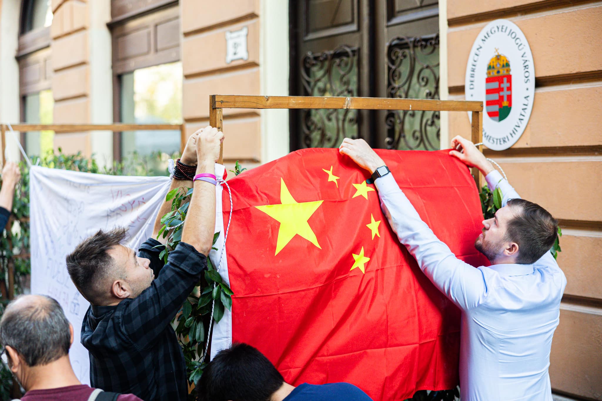 Kínai zászlót vitt Debrecen fideszes polgármesterének a Momentum parlamenti frakciója. A párt politikusai hétfőn a városban tartották kihelyezett frakcióülésüket, majd pedig meglátogatták Papp László polgármester irodáját.