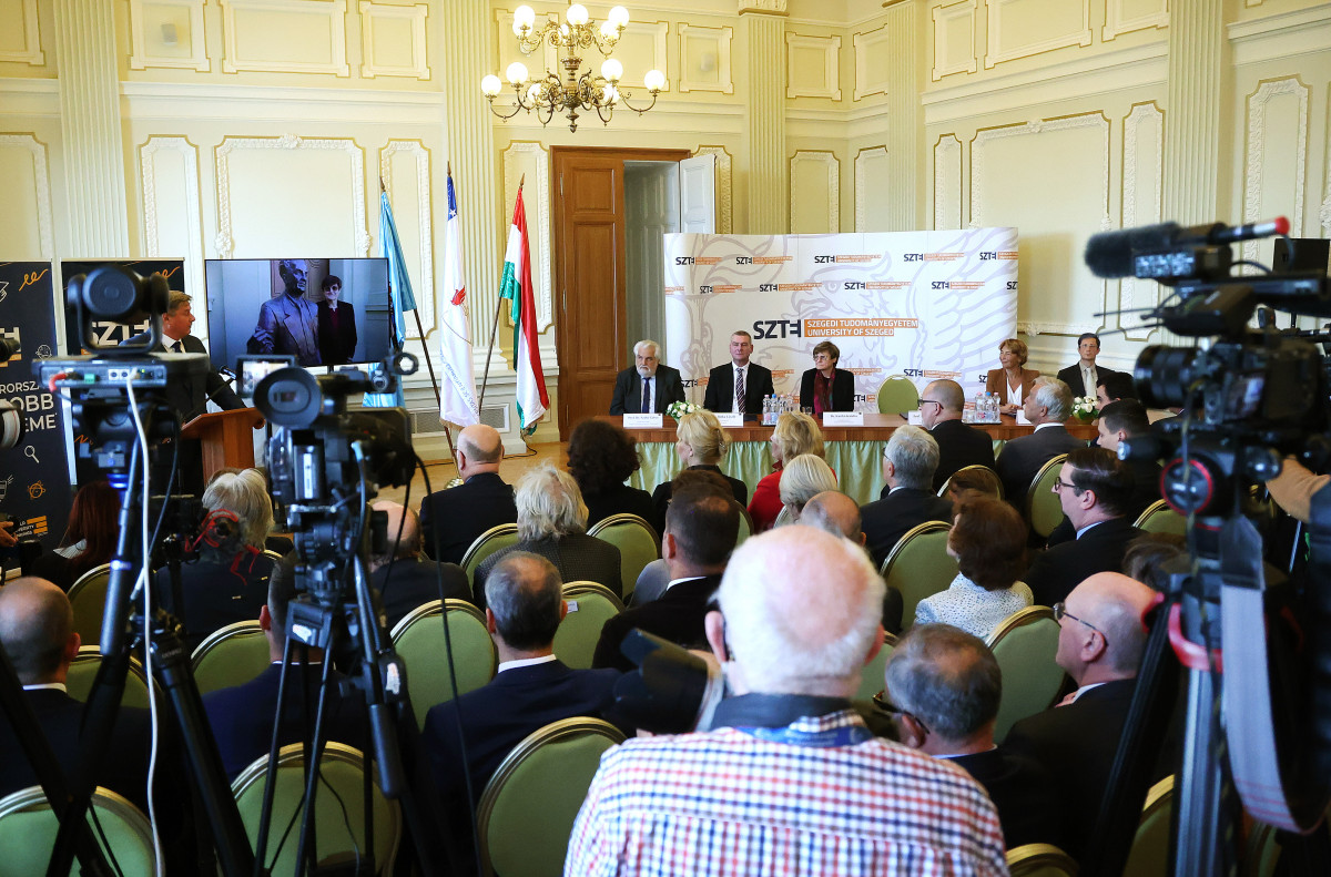 A tudóst a Szegedi Tudományegyetem Dugonics téri épületénél kora délután előbb nagy taps fogadta, majd vastaps és üdvrivalgás következett. A tudóst köszöntötték az egyetem, a vármegye és a város képviselői is.