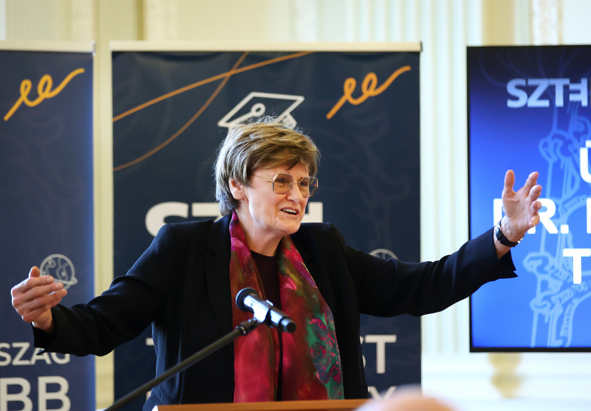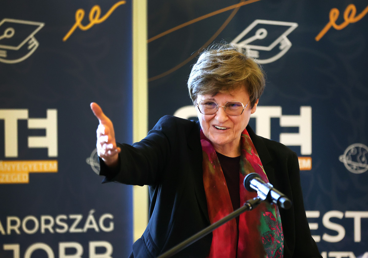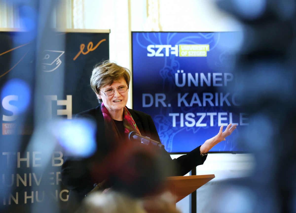 – Amikor az amerikai egyetemen a Nobel-díjjal kapcsolatos sajtótájékoztató véget ért, Weissman elment ünnepelni az ő csapatával, én pedig hazamentem. Ezért vagyok most itt, mert az én kollégáim az SZBK-ból, az egyetemi csoporttársaim, a tanáraim, a kisújszállásiak, akik tanítottak, azok itt vannak. És én most jöttem ünnepelni – mondta rövid beszédében Karikó Katalin, és nagy tapsot kapott.