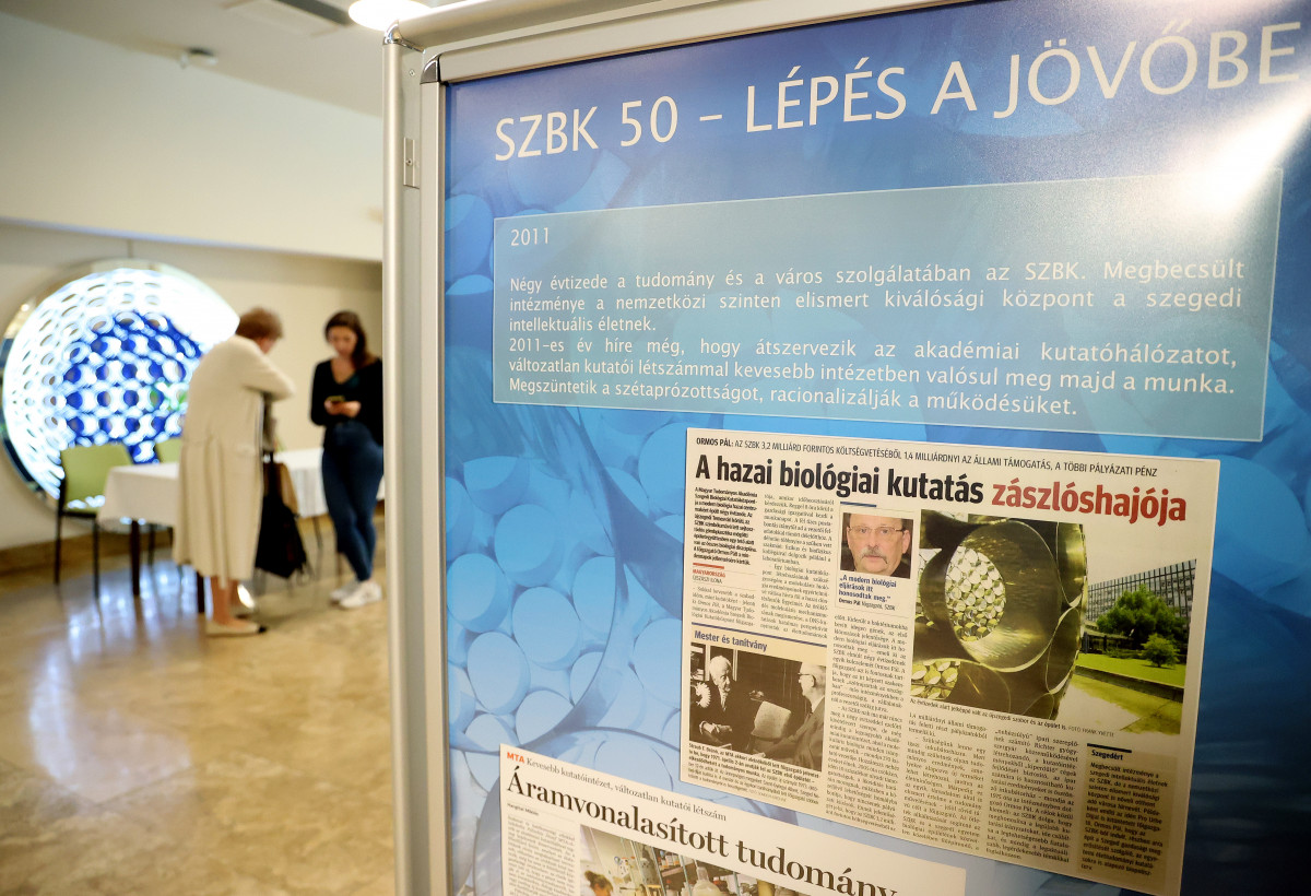 Freund Tamás, a Magyar Tudományos Akadémia elnöke felidézte, az ötven éve – az akadémia intézményeként – alapított SZBK újat hoz a magyar tudományos közéletbe műszerellátottsága és az ott dolgozó kutató kritikus tömeget meghaladó száma miatt. Az központ kutatói közössége azóta folyamatosan bizonyította képes nemzetközi élvonalba tartozó biológiai kutatási témák sikeres művelésére.