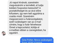 Tegező, néha magázó köszönéssel bejelentkező delikvensek azonnal rátértek a fontosabb kérdésekre: „Meg van még a készülék?” „Jó az állapota?” „Futárszolgálattal mehet a postázás?” Mert ha Anya csomagküldővel adná fel a tv-t, akkor szükséges lenne az email címének a megadása, hogy átirányítsák egy biztonságos fizetési felületre. Biztonságos fizetési felület? Mi is ez? Kicsit vonakodva fogadta ezeket a trendi huncutságokat, de ha ez a jövő, ez az egyszerű, ez a jó megoldás, akkor nem áll ellen neki. De valami mégsem tetszett neki, ezért elkezdett visszakérdezni. Csak sablonos, magyartalan, keszekusza válaszokat kapott, és amikor már azt érezte, hogy tolakodó üzemmódban akarják kicsalni az adatait, tiltólistára tette a beszélgető partnereit.