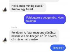 Új televíziót vásárló édesanyám egyik nap úgy döntött, hogy a Marketplacen fogja meghirdetni a lecserélt készüléket. Miután feltöltötte a tv fotóit, adatait a Facebook felületére, nem is kellett sokat várnia, mert elindultak a köszönés nélküli „Ez a készülék meg van még?” és hasonló jelleggel elindított beszélgetések. Majd az illedelmes válasz után, ezek az „intelligens” emberek valamiért eltűntek a világhálóban. Ekkor egy pici panaszkodás hagyta el az anyám száját, hogy hogyan lehetnek ennyire bunkók az emberek, hogy még köszönni sem tudnak, de egy vállrándítással el is felejtette az egészet. Édesanyám még nem is sejtette, hogy a pikáns megkeresések csak ezután érkeznek.