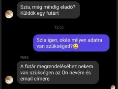 A sztori után elkezdtem kutatni, hogy vajon mással is történt-e hasonló szituáció, és vannak-e károsultak. A Facebookon találtam is ilyen csoportokat, ahol csalódott eladók és vevők mesélték arról, hogy hogyan károsították meg őket, és tippekkel, ötletekkel szolgáltak, hogy mit ne tegyenek és mire figyeljenek az emberek. Sajnos megdöbbentő és szomorú történeteket találtam, szinte ugyanazzal a metodikával felépítve, mint amilyet anyám is megtapasztalt. Érdeklődnek a meghirdetett tárgy állapotára, félig tegező, félig magázó, katyvaszos, hibás beszélgetéssel, és mindig az email címet szeretnék kicsikarni. A csoport bejegyzési alapján kiderült az is, hogy már nagyon sok a szemfüles és rutinos kereskedő, mert nem adnak ki semmilyen adatot sem, és szinte kigúnyolják az érdeklődőket. De előfordul az is, hogy megfenyegetnek egy-egy eladót, hogy ha nem kapják meg a kért adatokat.