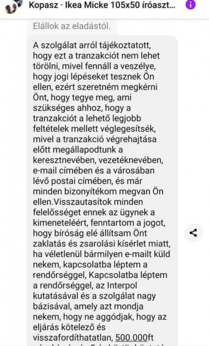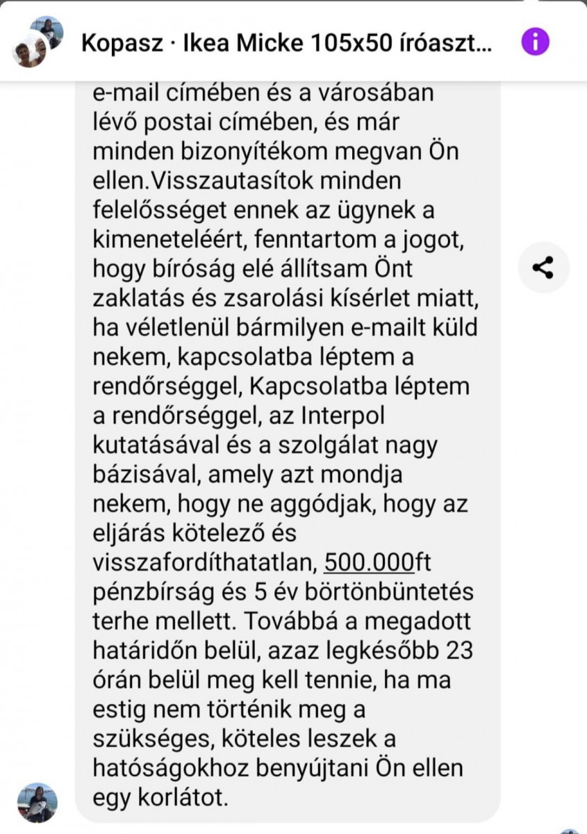 A sztori után elkezdtem kutatni, hogy vajon mással is történt-e hasonló szituáció, és vannak-e károsultak. A Facebookon találtam is ilyen csoportokat, ahol csalódott eladók és vevők mesélték arról, hogy hogyan károsították meg őket, és tippekkel, ötletekkel szolgáltak, hogy mit ne tegyenek és mire figyeljenek az emberek. Sajnos megdöbbentő és szomorú történeteket találtam, szinte ugyanazzal a metodikával felépítve, mint amilyet anyám is megtapasztalt. Érdeklődnek a meghirdetett tárgy állapotára, félig tegező, félig magázó, katyvaszos, hibás beszélgetéssel, és mindig az email címet szeretnék kicsikarni. A csoport bejegyzési alapján kiderült az is, hogy már nagyon sok a szemfüles és rutinos kereskedő, mert nem adnak ki semmilyen adatot sem, és szinte kigúnyolják az érdeklődőket. De előfordul az is, hogy megfenyegetnek egy-egy eladót, hogy ha nem kapják meg a kért adatokat.