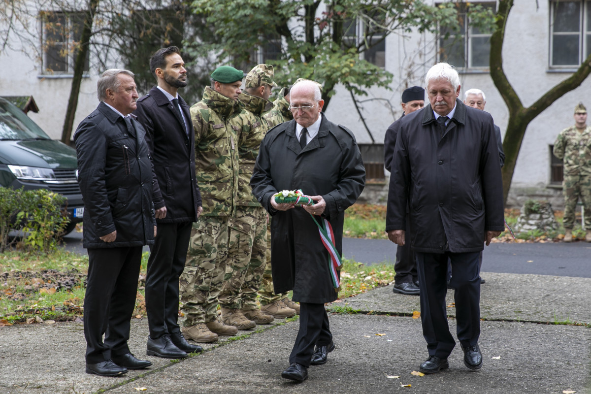 A megemlékezés a mártír katonák emléktáblájának koszorúzásával ért véget a Kossuth laktanyában.