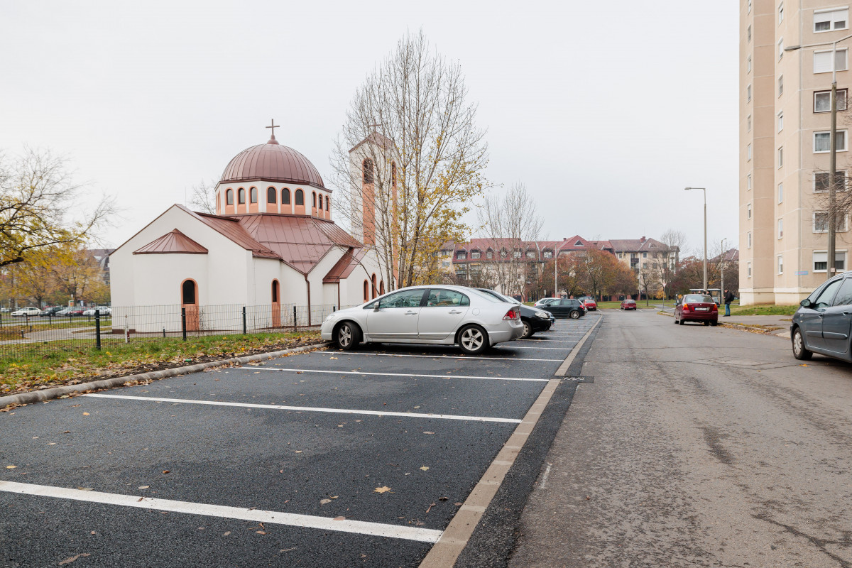 110 méter hosszon újult meg a parkoló, 40 millió forintból. A felfestésnek köszönhetően 10%-al több autó tud parkolni ezen a területen.