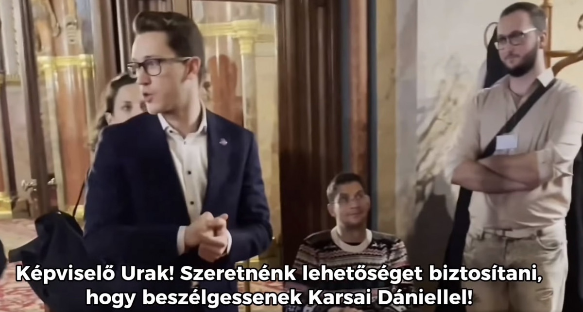 Ahogy a videóban látszik, a fideszesek nem tartották fontosnak Karsai Dániel ügyét, egyikőjük sem jött oda beszélni vele. 0:48 körül Tasó László, Hajdú-Bihar megye 3. számú választókerületének fideszes országgyűlési képviselője is felbukkan: