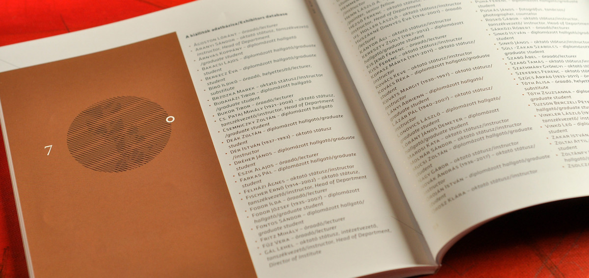 Kiss Ferenc tervezőgrafikus művész, a Rajz-művészettörténet Tanszék oktatója és a kötet tervezője elmondta, hogy nagy öröm számára, hogy a múlt letéteményeseként a 70. jubileum emlékére elkészült katalógus a nemzetközi porondon is bizonyíthatja komplex értékeit és azt, hogy a design a művészettel egyenlő és nem művészetre vágyó diszciplína. Ahogy ars poeticája is hangsúlyozza, a másik az egész értelme. Az amerikai kontinensen bemutatásra kerülő alkotók a tervezőgrafika támogatásával hirdethetik a vizualitás egyetemességét.