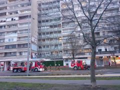 A helyszínre két tűzoltóautó érkezett, az utca egyetem felé közlekedő sávját terelőbójákkal zárták le.