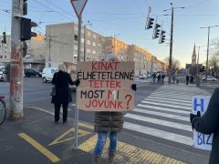 Szerda reggel a Kossuth utca-Klaipeda utca sarok déli oldalán lévő gyalogosátkelőhelyen megkezdték demonstrációjukat a ZebraSzerda Debrecen szervezői.
