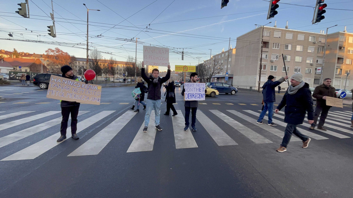 Szerda reggel a Kossuth utca-Klaipeda utca sarok déli oldalán lévő gyalogosátkelőhelyen megkezdték demonstrációjukat a ZebraSzerda Debrecen szervezői.