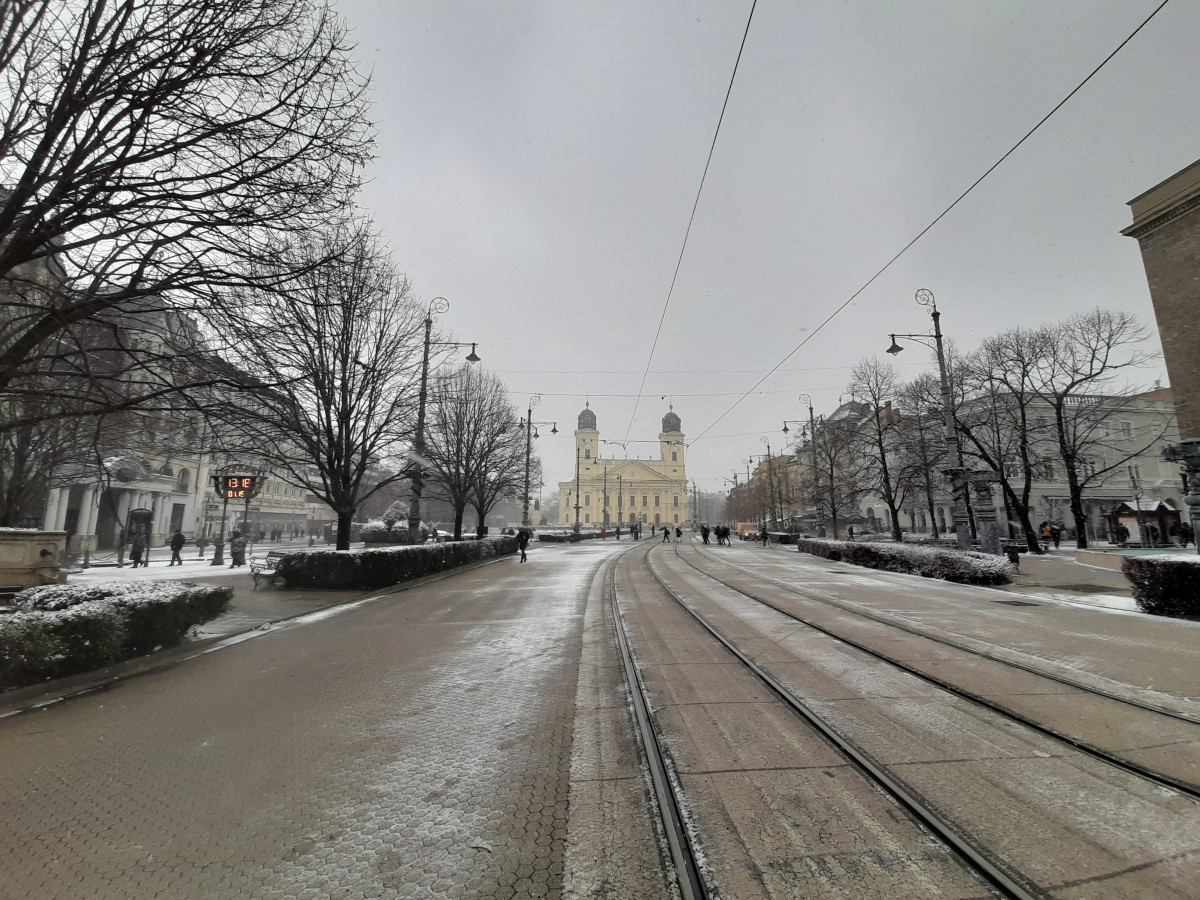 Több centi friss hó hullott Debrecenben és környékén péntekre, köszönhetően egy markáns hidegfrontnak.