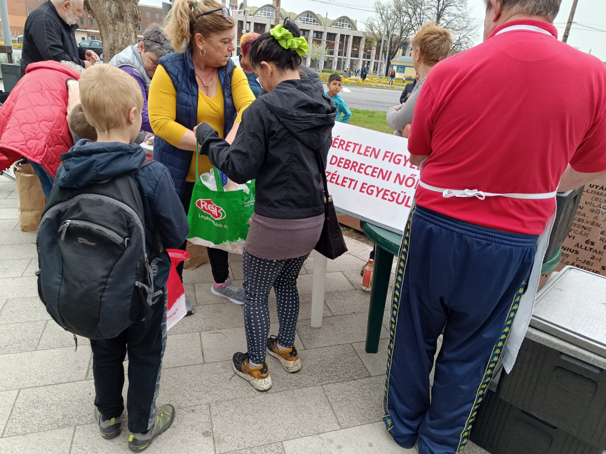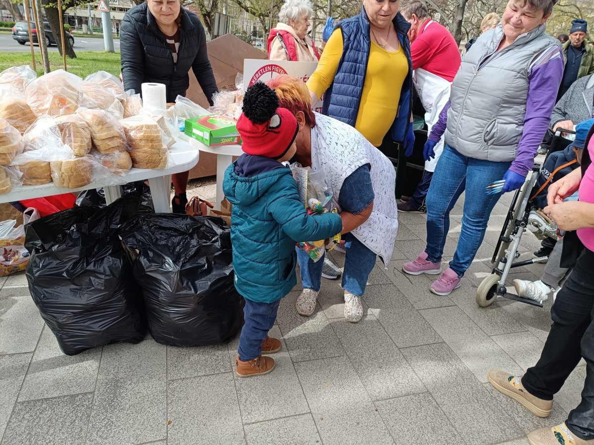 Megdöbbentő volt látni, hogy sorban érkeztek a szegények, köztük rengeteg új arc, akik most jöttek először. Szívünk összeszorult, amikor láttuk, az ország második legnagyobb lélekszámú városában hányan élnek a társadalom peremén, élére rakva kevéske pénzüket. Megtört, az élet és a nélkülözés által meggyötört magyar emberek várták, hogy egy tányér töltött káposztához, friss kenyérhez, húsvéti kalácshoz jussanak.
