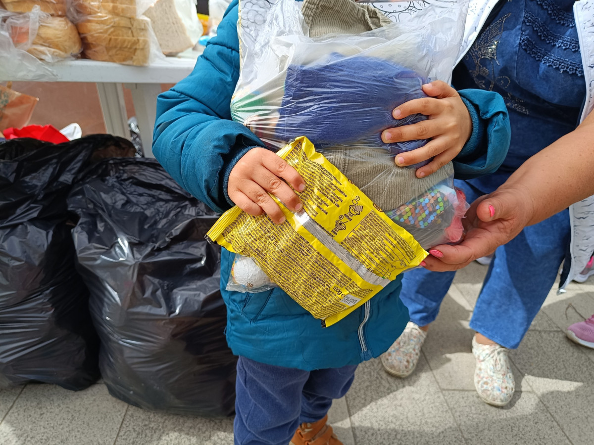 Már nem meglepő, hogy sok család érkezik együtt az ételosztásainkra. Így volt ez most is. A gyerkőcök mindegyike kapott húsvéti édességet, játékot. Egy ötéves kisfiú ma ünnepelte születésnapját, őt külön is felköszöntöttük, megajándékoztuk.