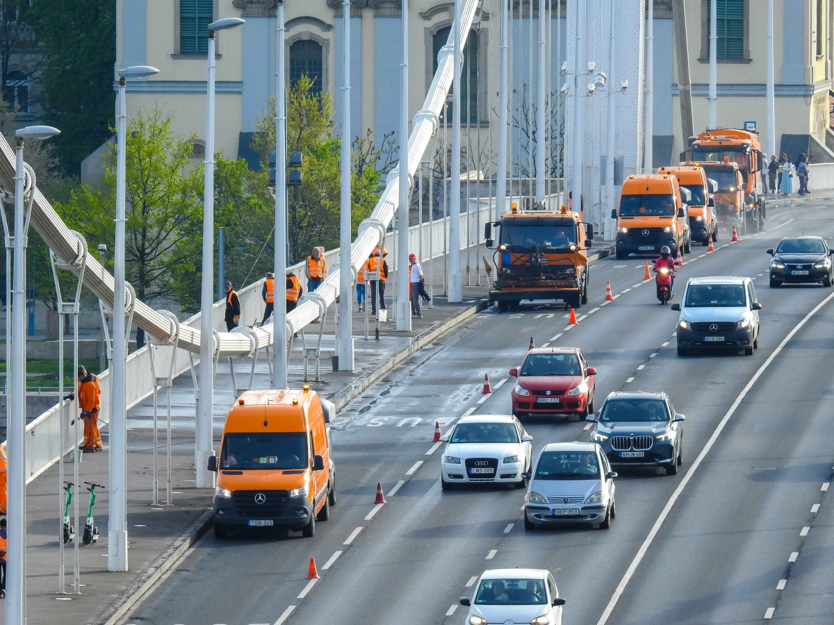 Szombaton az Árpád híd déli, vasárnap az északi oldalát tisztítják meg 6.30 és 13.30 között. Az FKF kéri a hídon közlekedőket, figyeljenek a munkagépekre és vigyázzanak az ott dolgozókra.