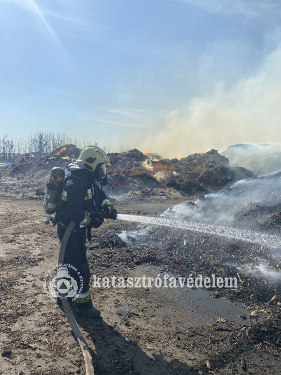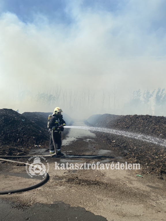 Emlékeztettek, több méter magasan összehordott fa-, valamint növényi hulladék gyulladt meg, és égett mintegy ezer négyzetméteren.
