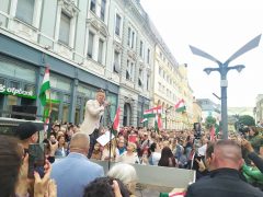 Magyar az “ereszen lemászó, drogos politikusok” helyett közönsége figyelmébe ajánlotta sok nyelven beszélő, hazájukat szerető, felkészült jelöltjeit. Színpadra invitálta a nyíregyházi gyökerekkel is rendelkező, beregszászi születésű Gerzsényi Gabriellát, valamint a sebészorvosként tevékenykedő Kulja Andrást.