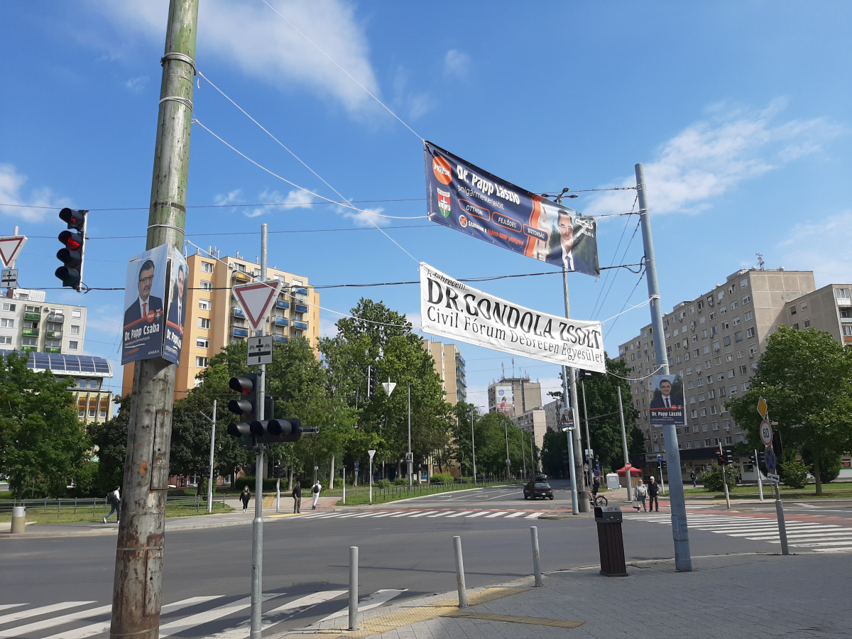 Nyomokban előfordul még egy-egy molinó a Civil Fórum Debrecen Egyesületet hirdetve, illetve polgármesterjelöltjük, Gondola Zsolt Zoárd is kacsingat már ránk – Pappékhoz képest nagyságrendekkel kisebb volumennel.