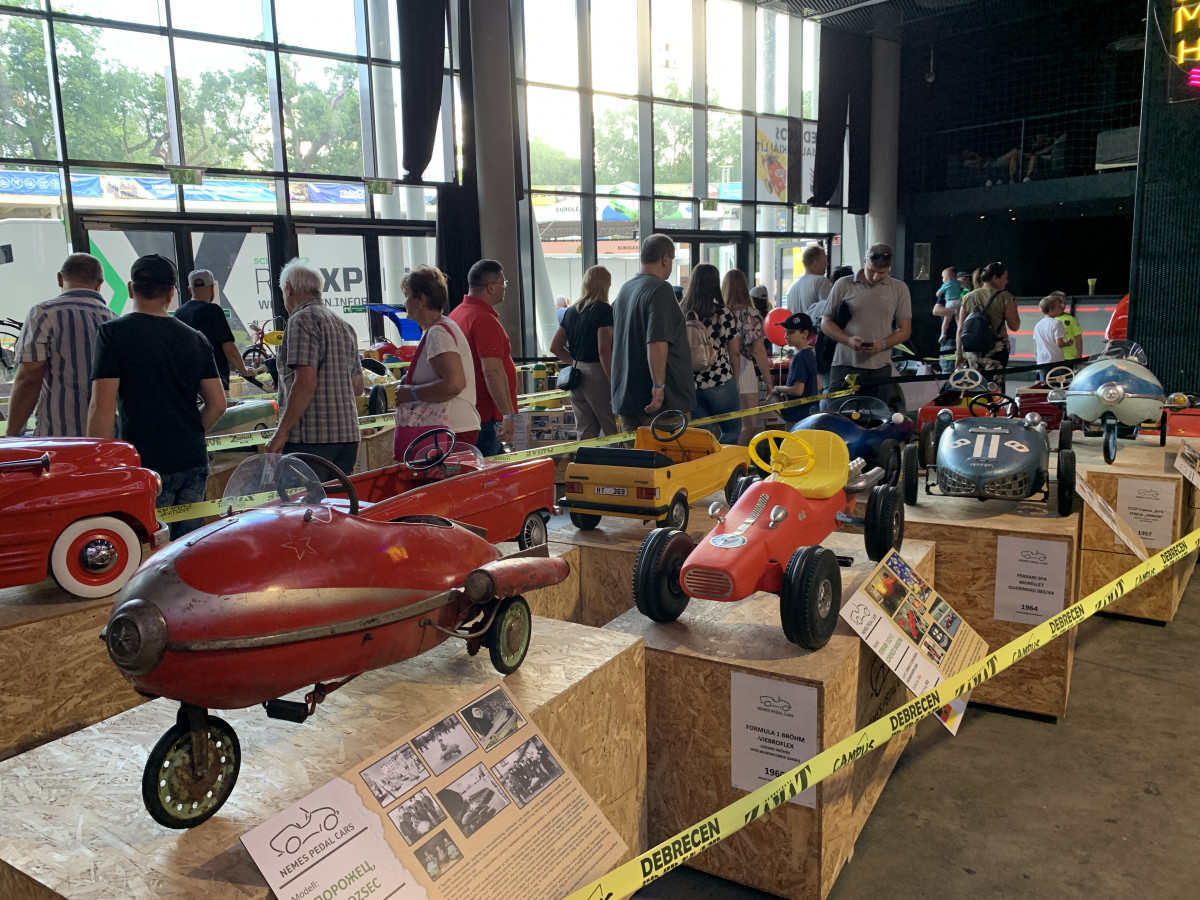 A másik újdonság pedig a Hallban található pedálosautó-kiállítás volt, ahol több száz régi és újkori csodát tettek közszemlére a Nemes Pedal Cars jóvoltából, ahol a tankformájú vagy éppen normális versenyautókon túl a legegyszerűbb konstrukciók is helyet kaptak, mint például egy talicska. Legtöbb embernek egyébként egyfajta múltidézésnek is beillett ennek a tárlatnak a megtekintése és sok kedves emléket idézhetett fel az, akinek volt ilyen gyerekkorában.