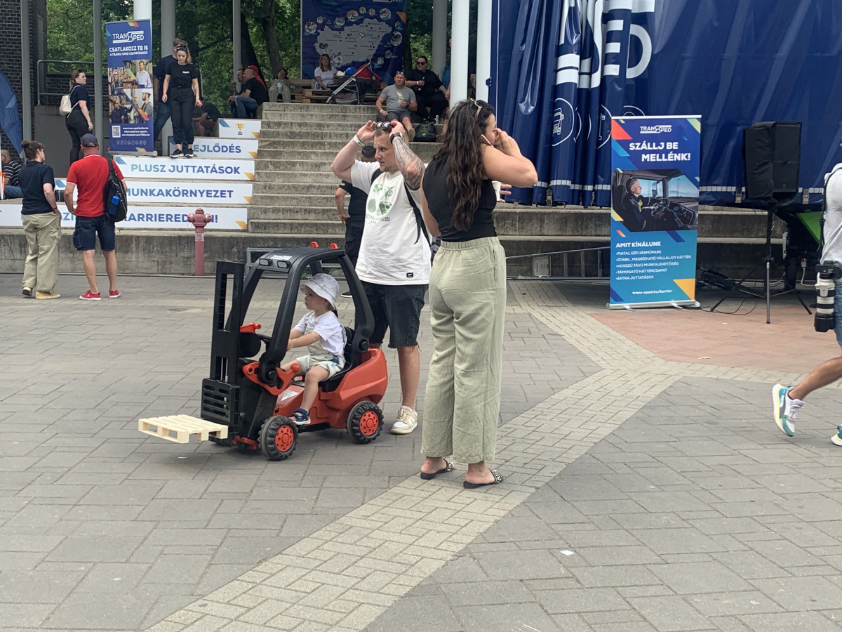 A harmadik érdekesség nekem az a targoncaverseny volt, ahol elektromos targoncákkal különböző ügyességi feladatokat kellett végrehajtani a szerencsés versenyzőknek. Ilyen volt a villával egyensúlyozni egy gumilabdát, amit egy gyűjtőedényig kellett elvinni, de raklapokkal és gumiabroncsokkal is meg kellett birkóznia a delikvenseknek.