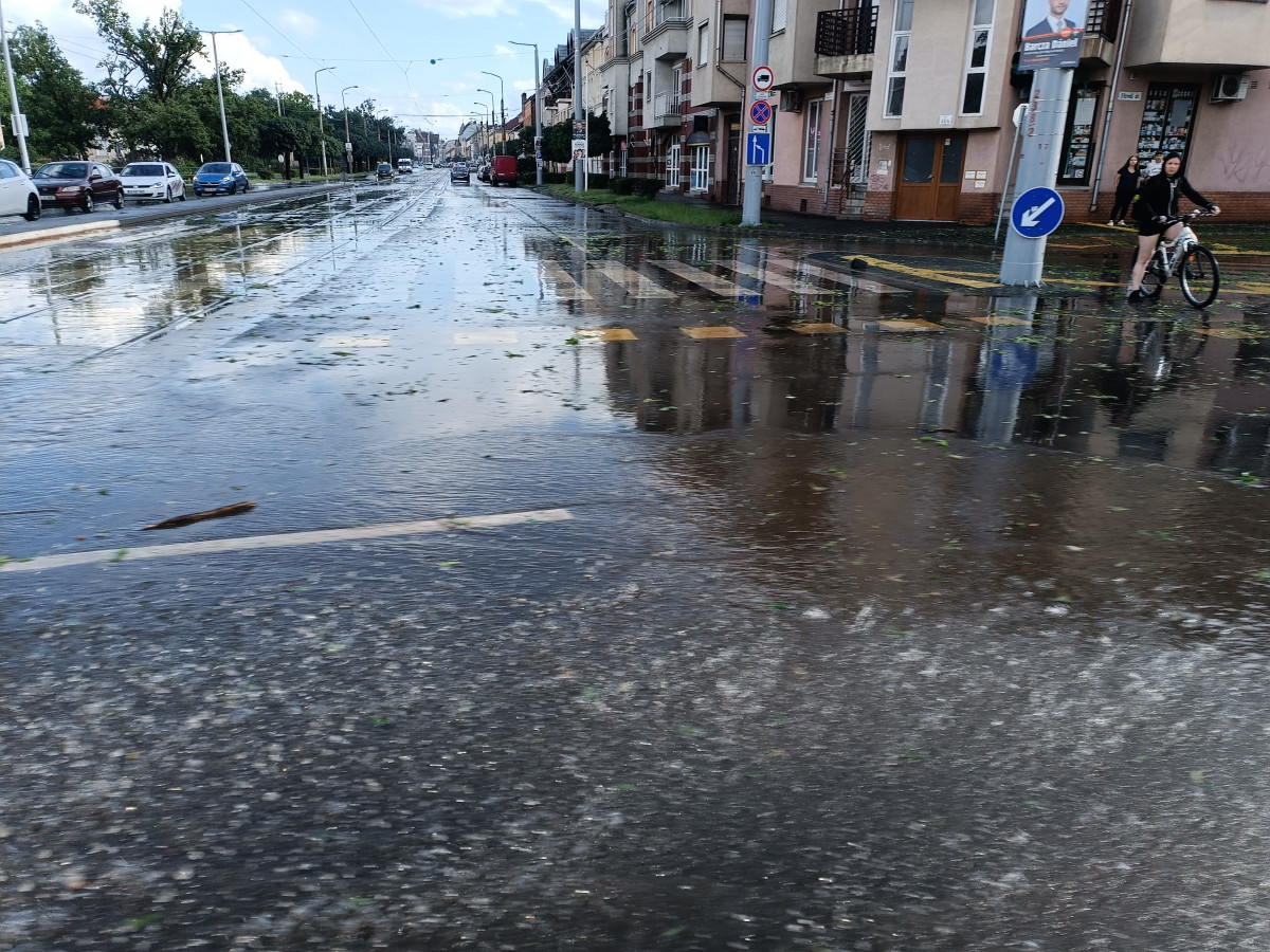 Két szupercella is lecsapott Debrecenre és tágabb környezetére szombat kora délután özönvízzel és sajnos sokfelé jégveréssel is. A debreceni közlekedést is alaposan próbára tette a hirtelen jött nagy mennyiségű csapadék.